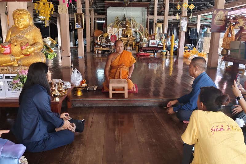 พระอาจารย์โอภาส เจ้าอาวาส จารมือเสริมดวงชะตามหานิยมให้ อ.กฤติเดช ทองเพิ่ม ผู้ช่วยประธานสภาอุตสาหกรรมท่องเที่ยวแห่งประเทศไทย ผู้นำคณะ Agent Trip อุทัยธานีเมืองน่าเที่ยว ในครั้งนี้